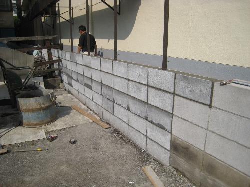 既存のブロック、フェンスを撤去し、新規ブロックを積みフェンスを取り付けました。