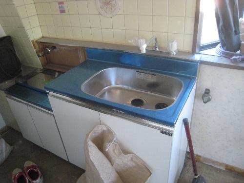 木工事は床下地組み、壁の補修、天井の補修とフローリング貼り工事があります、台所セットは床高さの関係でフローリングを播磨枝に据え付けました。